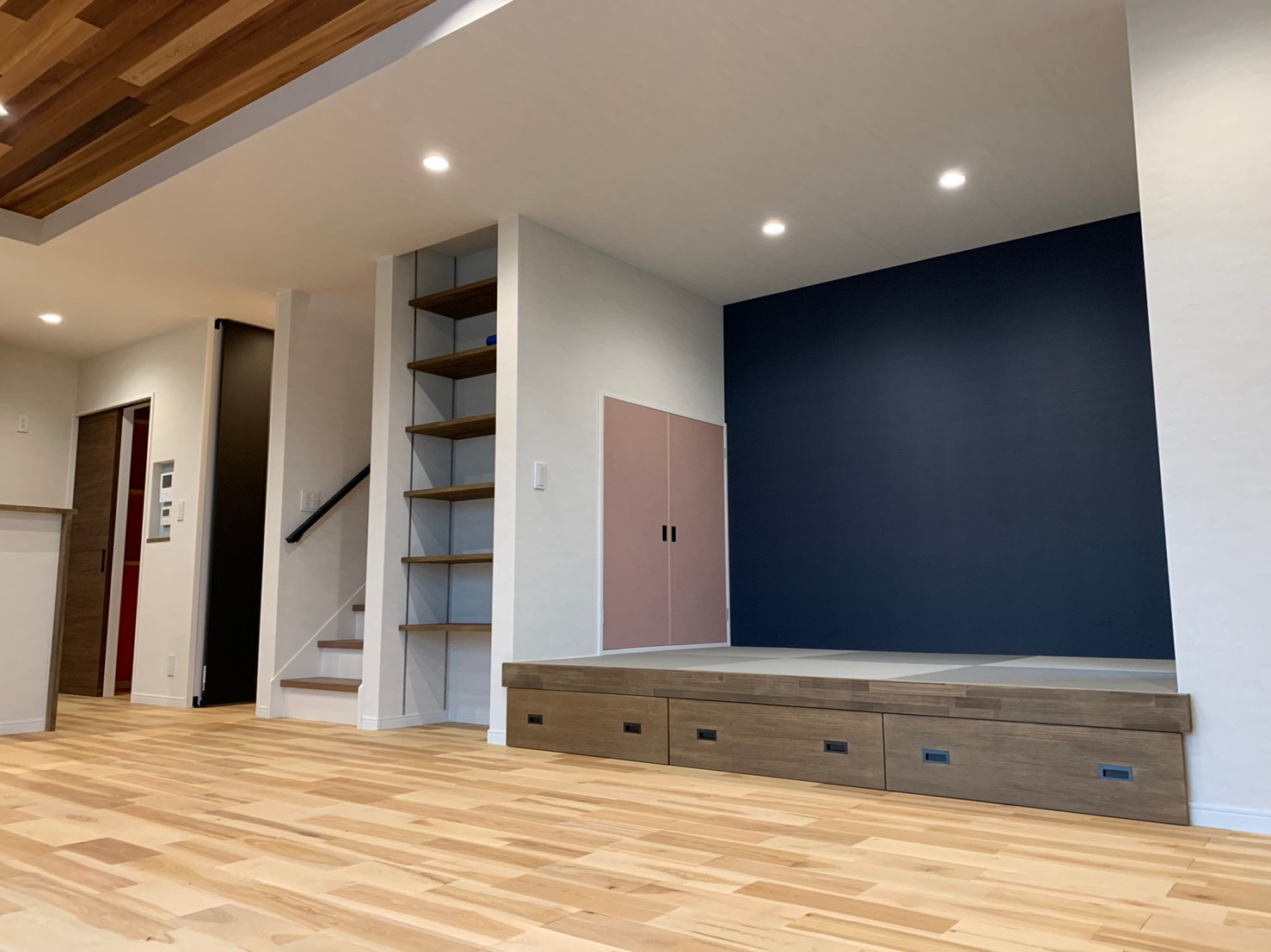 小上がりの畳スペースや充実した収納、デザイン性の高いタイルなど、暮らしを豊かにする工夫が詰まったお家です。