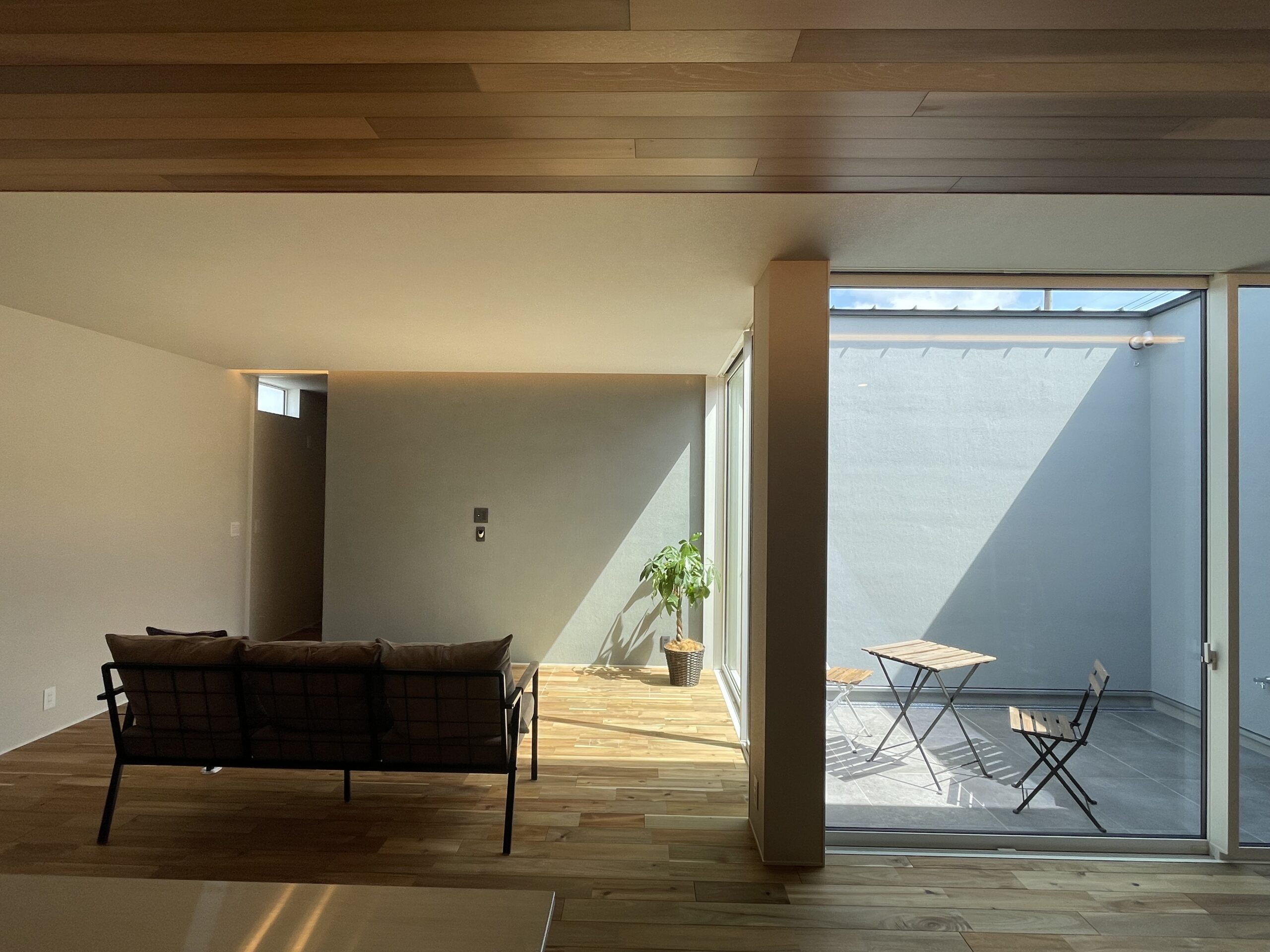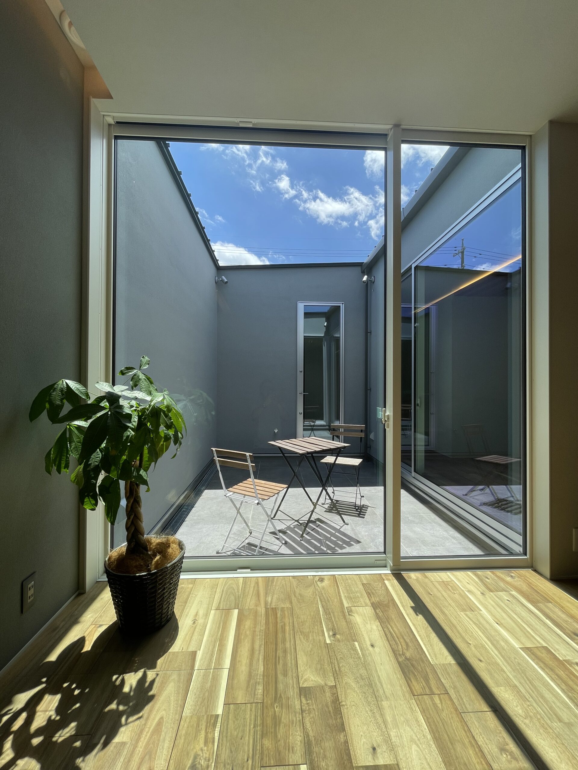家の中心に設けた中庭を囲むように配置されたLDKは、どの空間にも光と風を届けます。