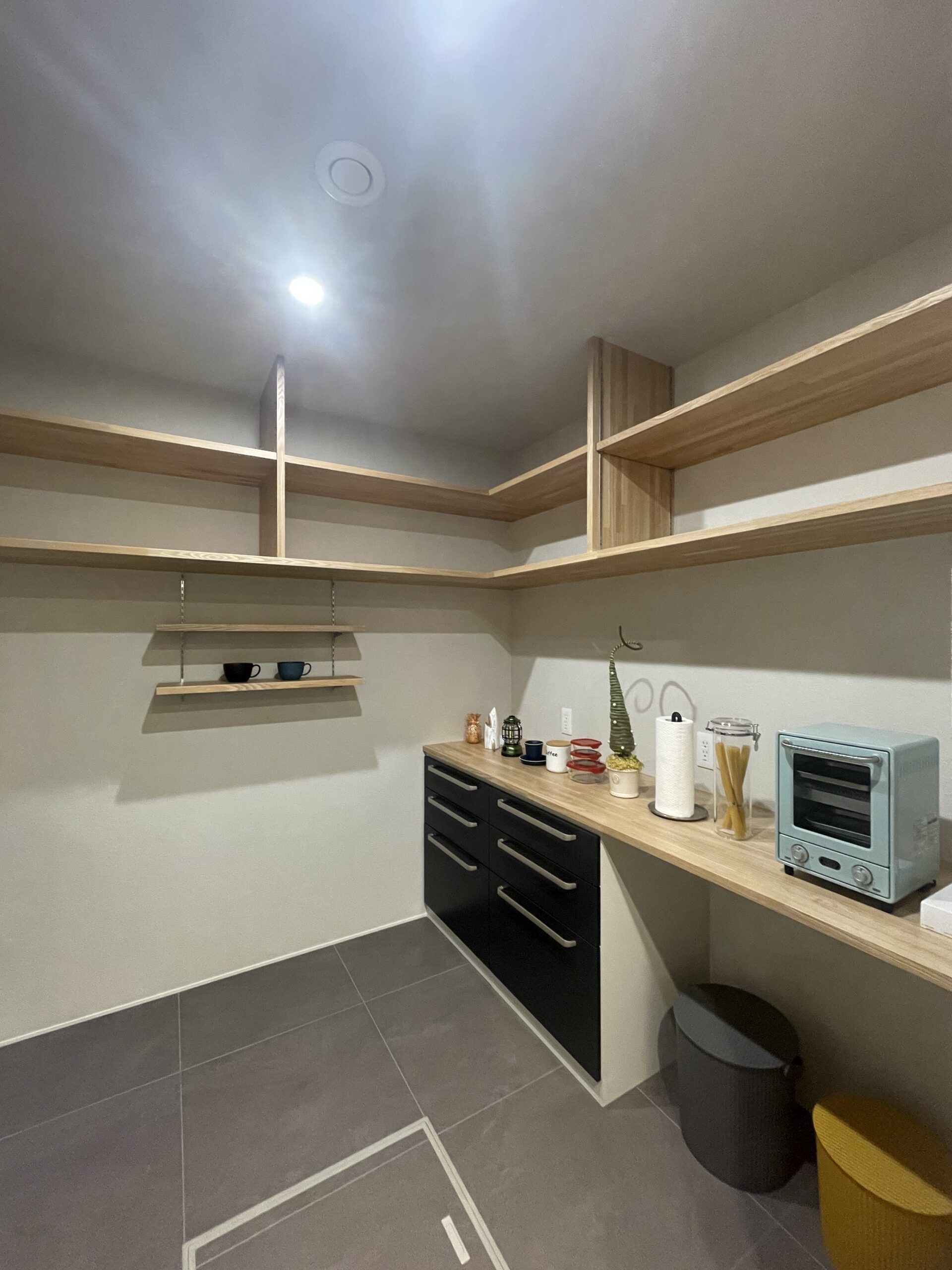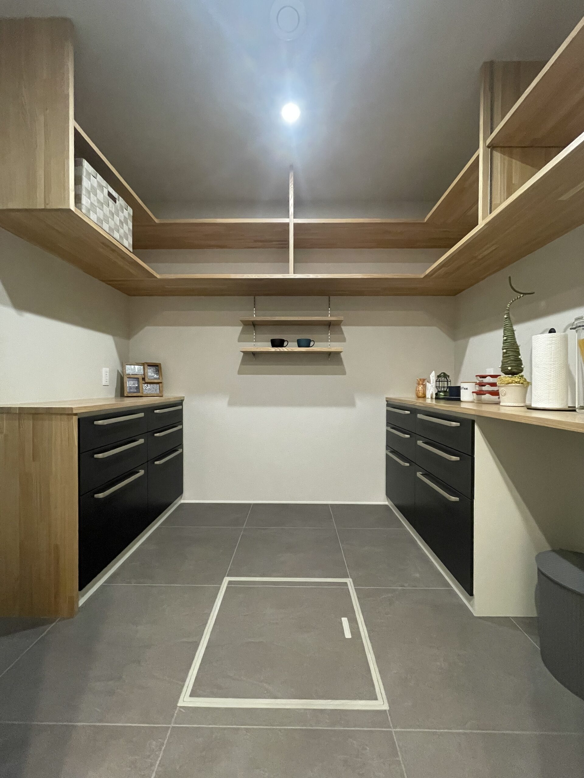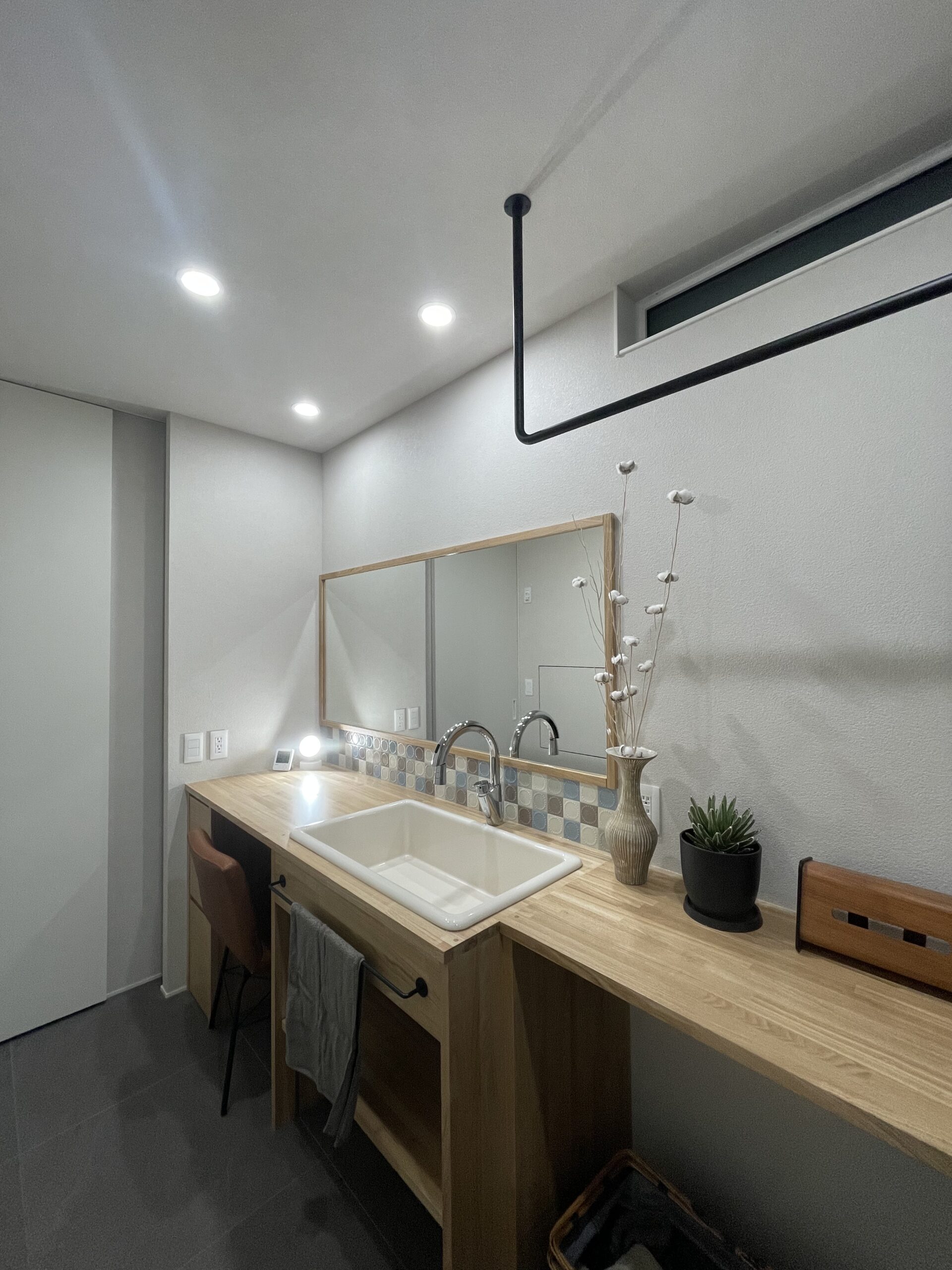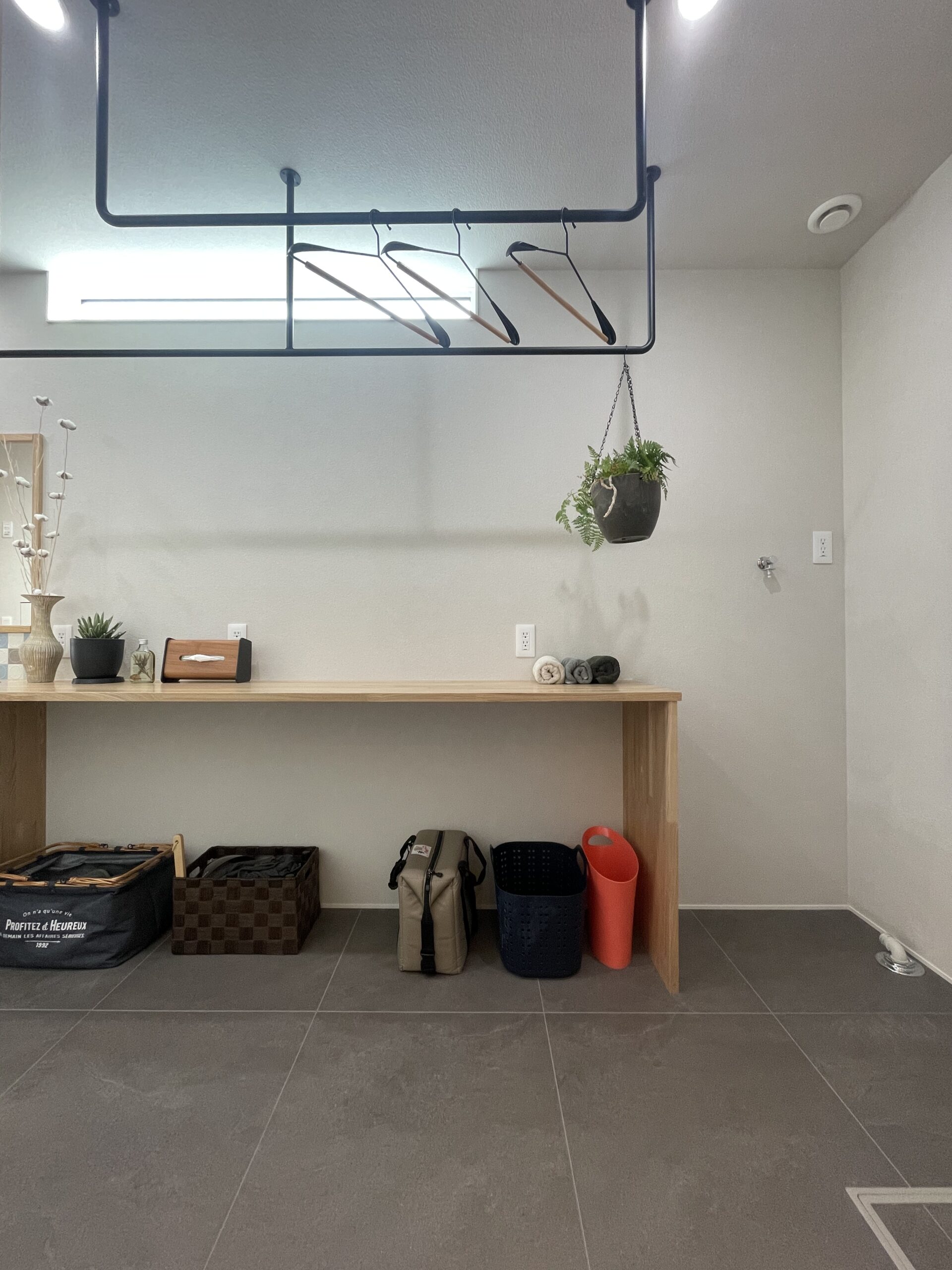 ゆとりある広さのランドリールームは、カウンターでの畳み作業や室内干しが可能。