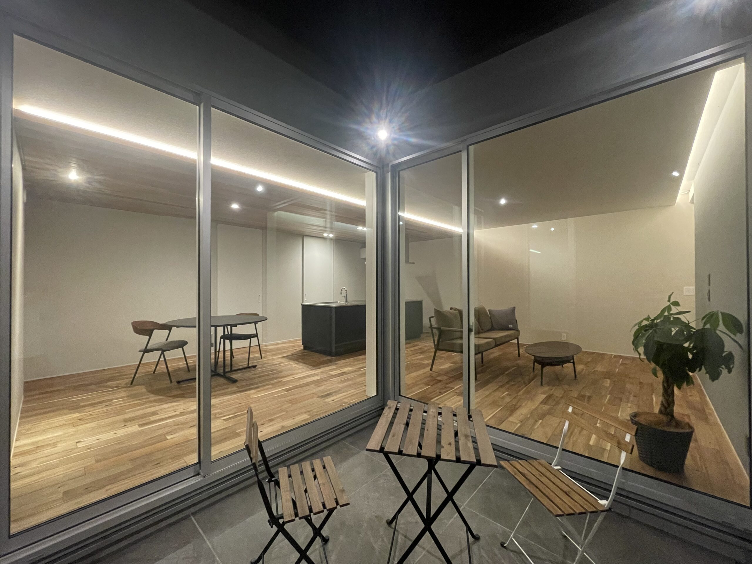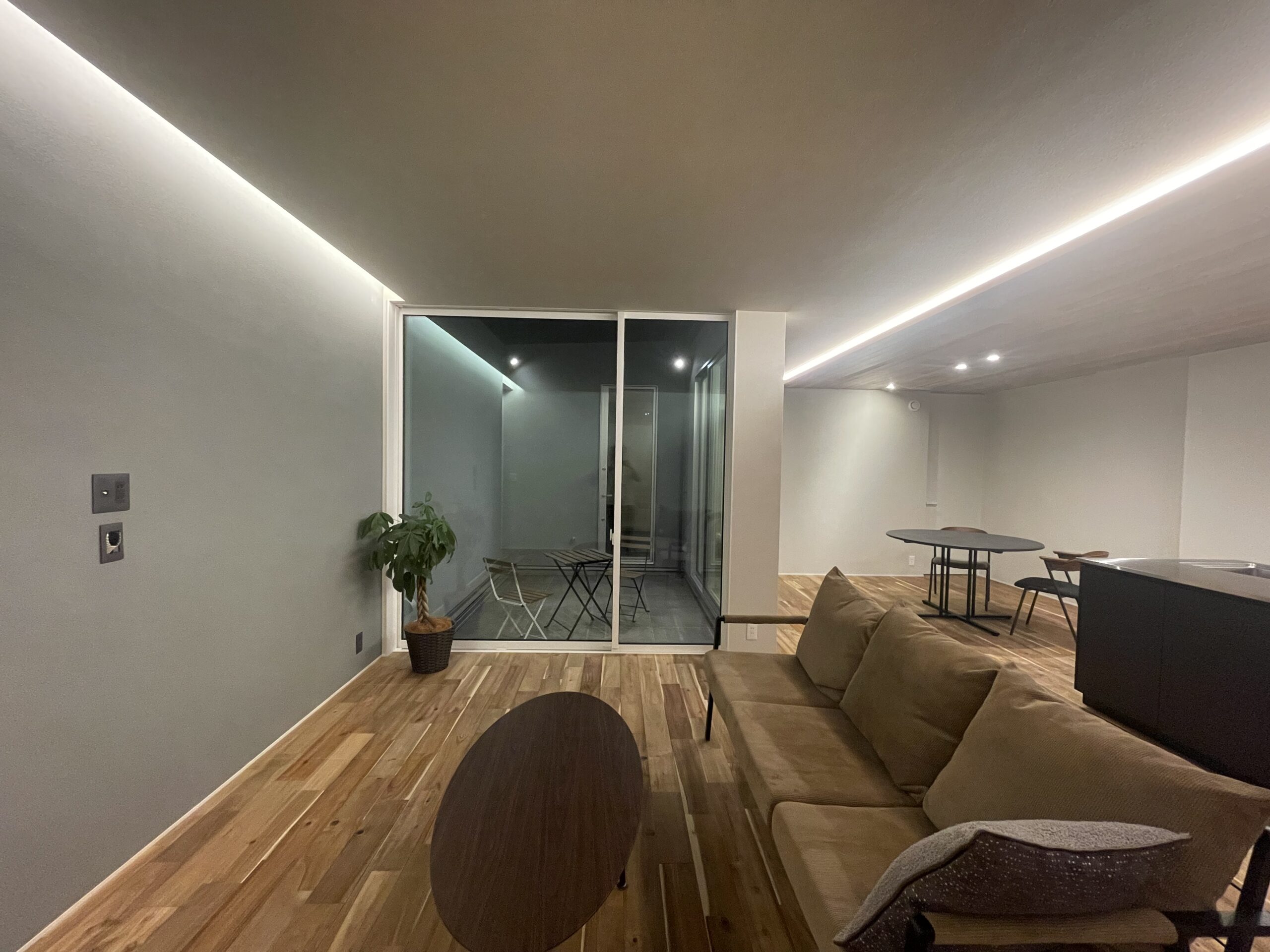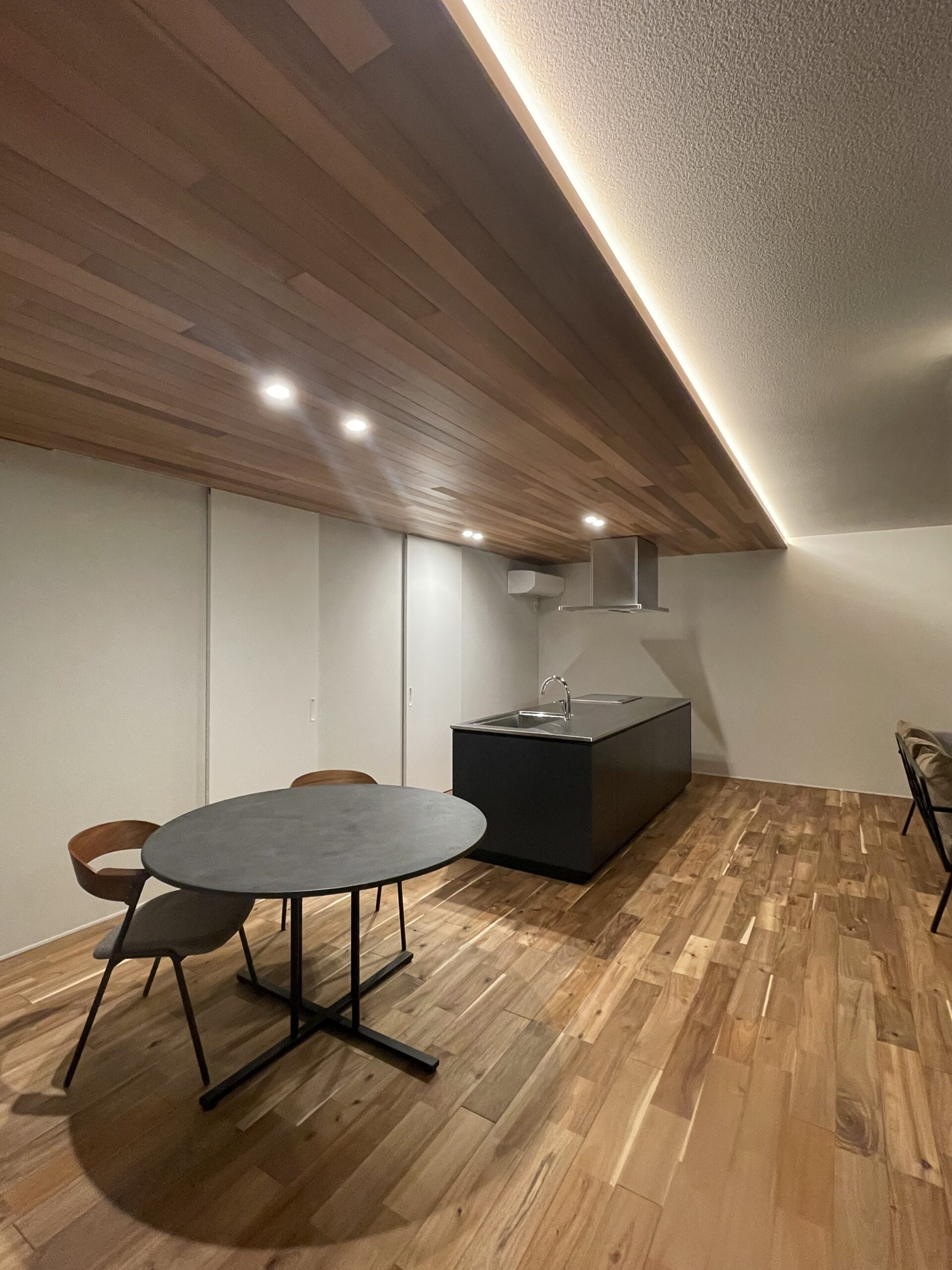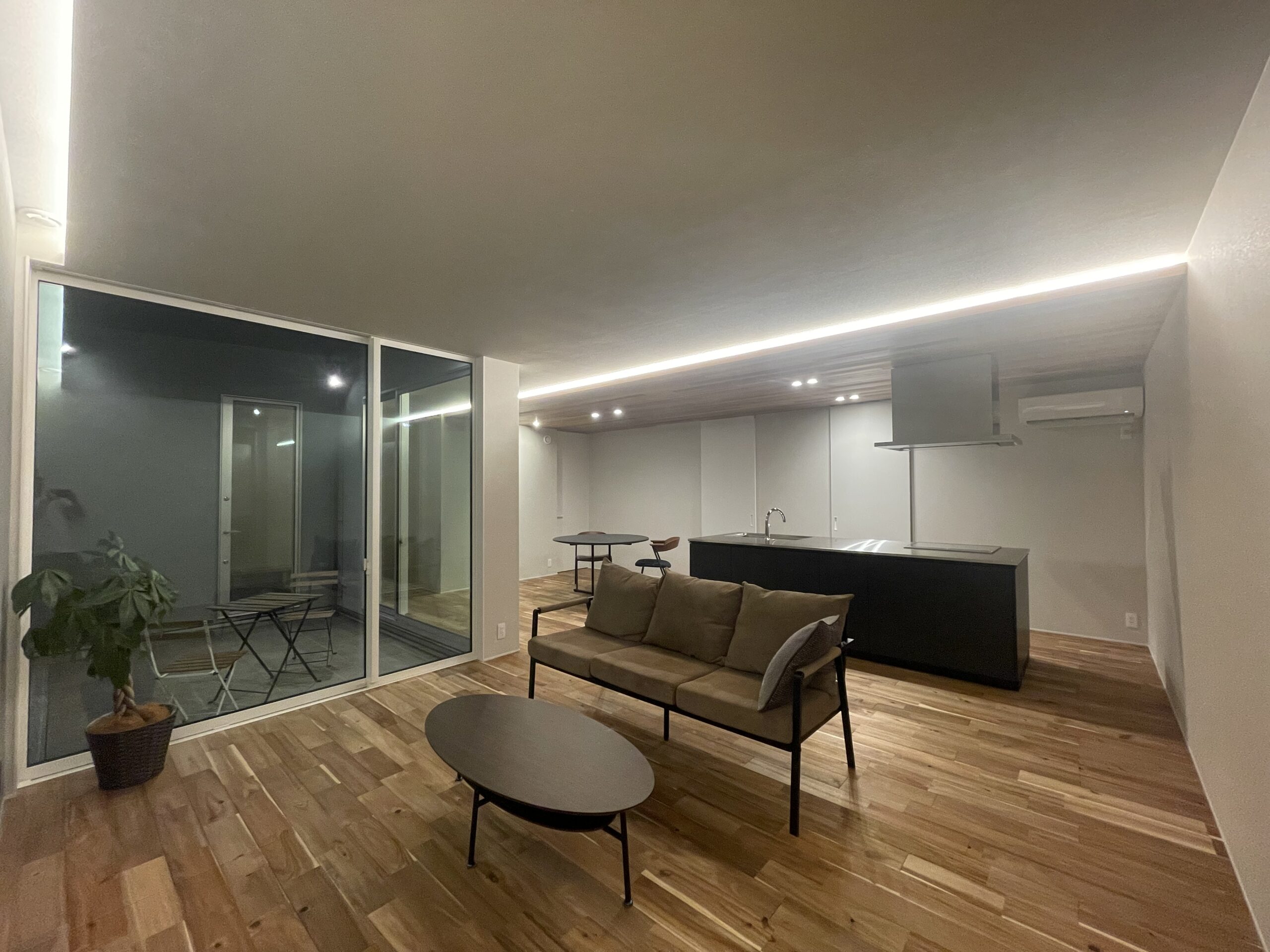 夜は間接照明が柔らかく空間を包み込み、昼と夜で異なる表情を楽しめます。